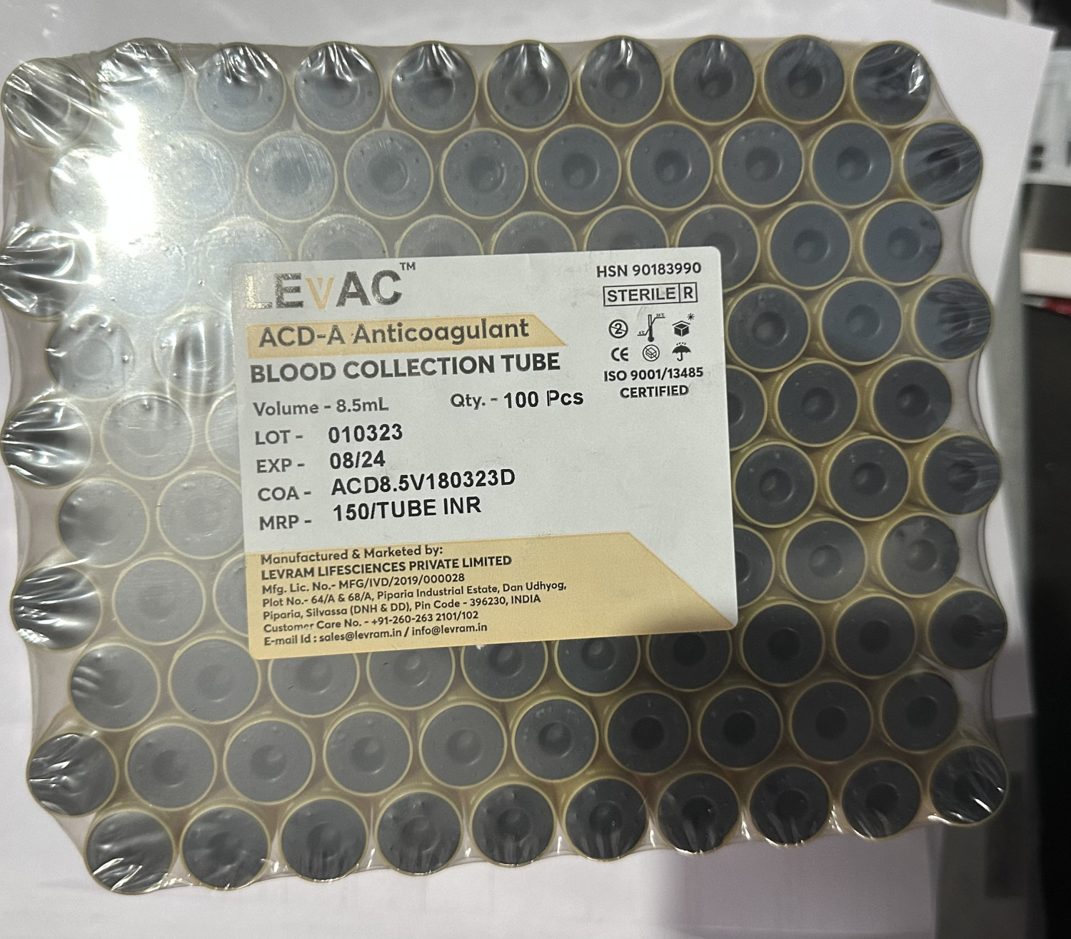 Levram ACD Solution A 8.5 mL tubes containing Acid Citrate Dextrose (ACD)